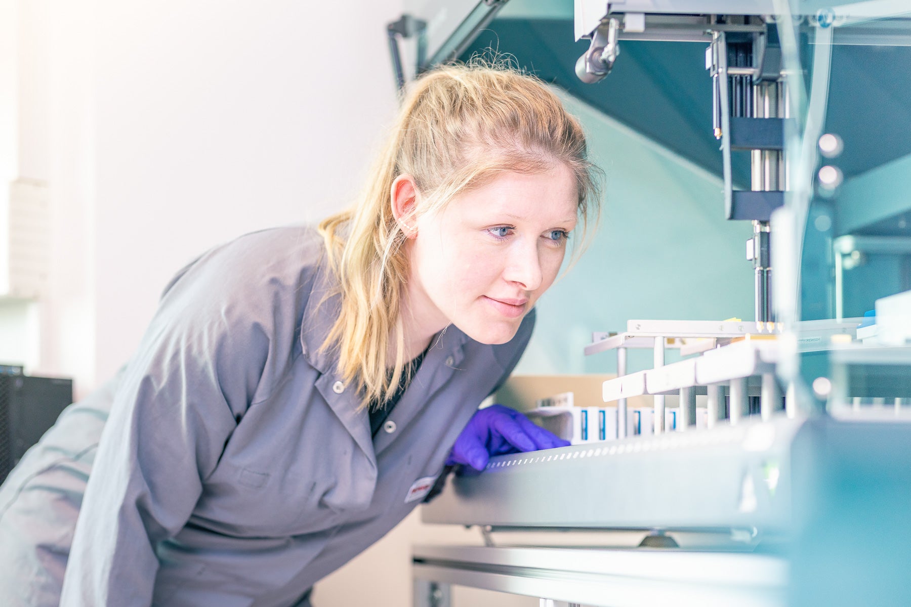 The highly innovative drive of the DKMS Life Science Lab condenses in our team. We manage or support all projects around the technical steps of our workflows. This includes large-scale ventures such as the Collaborative Biobank, the world’s first establishment of a swab-based CMV typing workflow, or the quick implementation of SARS-CoV-2 PCR testing in our lab to support the imminent needs of our health care system.