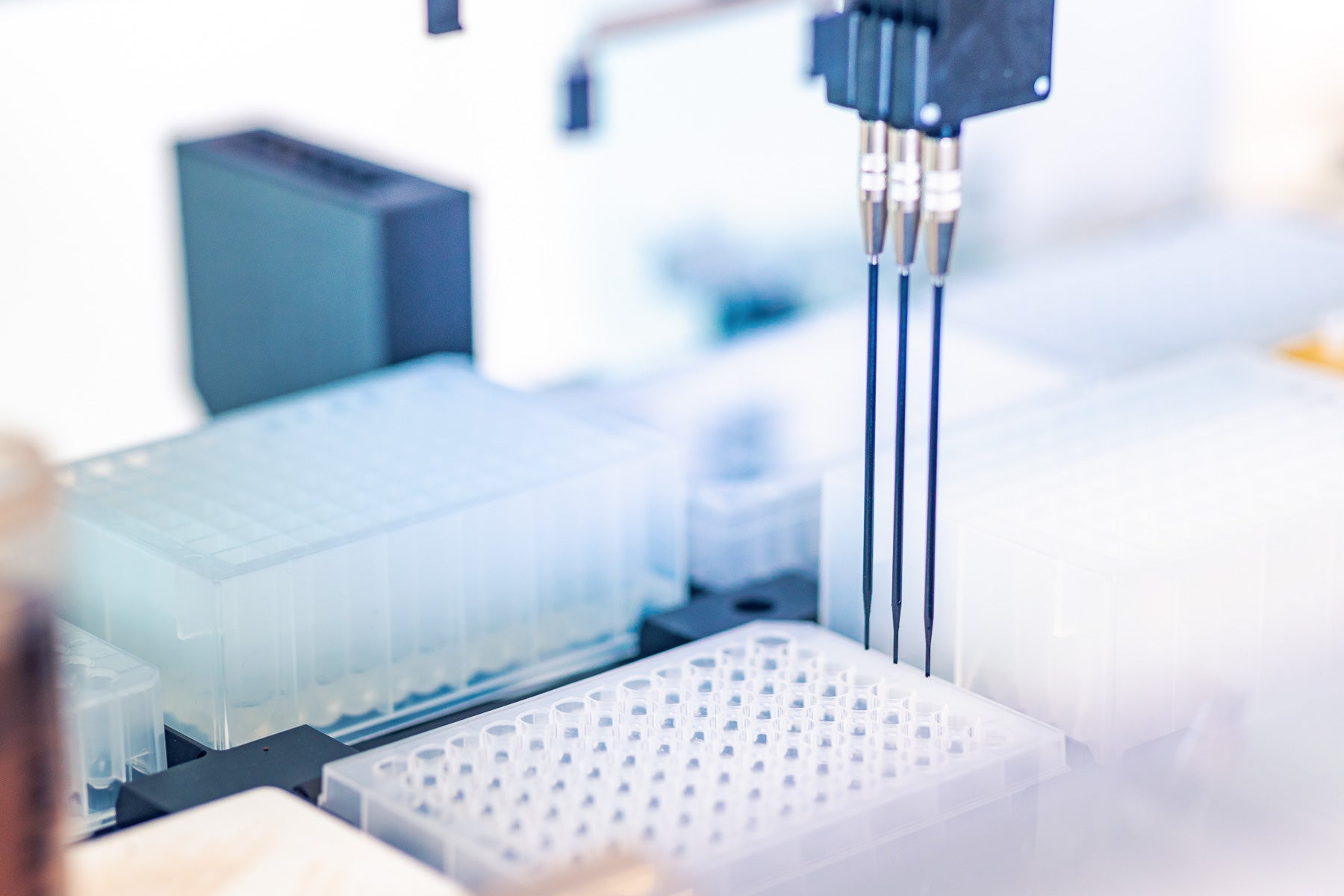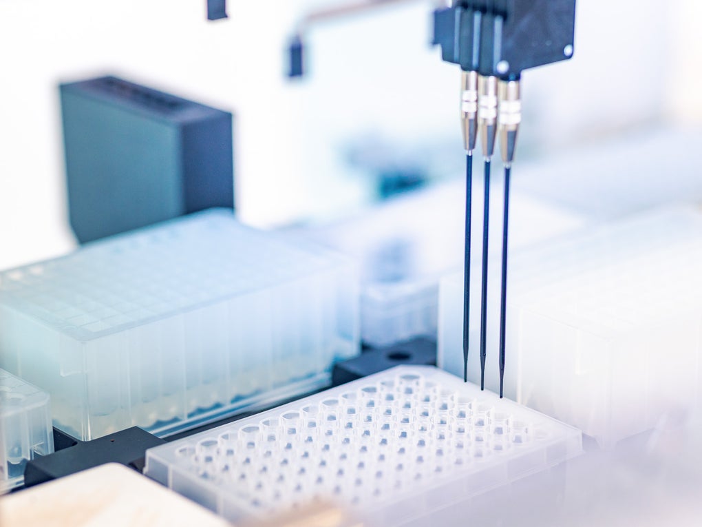 The workflow is set up for high-throughput DNA isolation from buccal swabs or whole blood. Sample panels with batches of up to 94 samples and one internal negative control sample can be processed automatically and simultaneously. The DNA is isolated and purified based on magnetic beads.